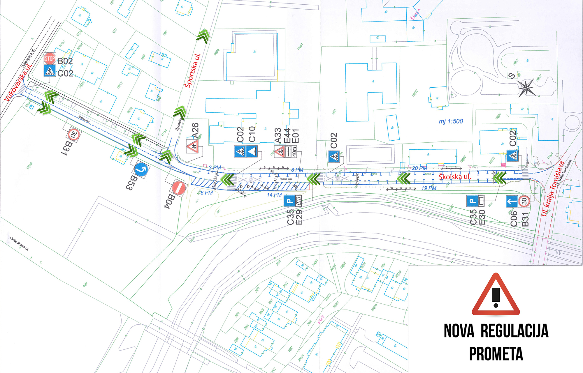 Dana 18.10.2018. godine nakon 16:00 sati u Školskoj ulici uvodi se nova regulacija prometa - jednosmjeran promet Školskom ulicom od Ulice kralja Tomislava do Športske ulice, te dvosmjeran promet na djelu od Športske ulice do Vukovarske ulice.