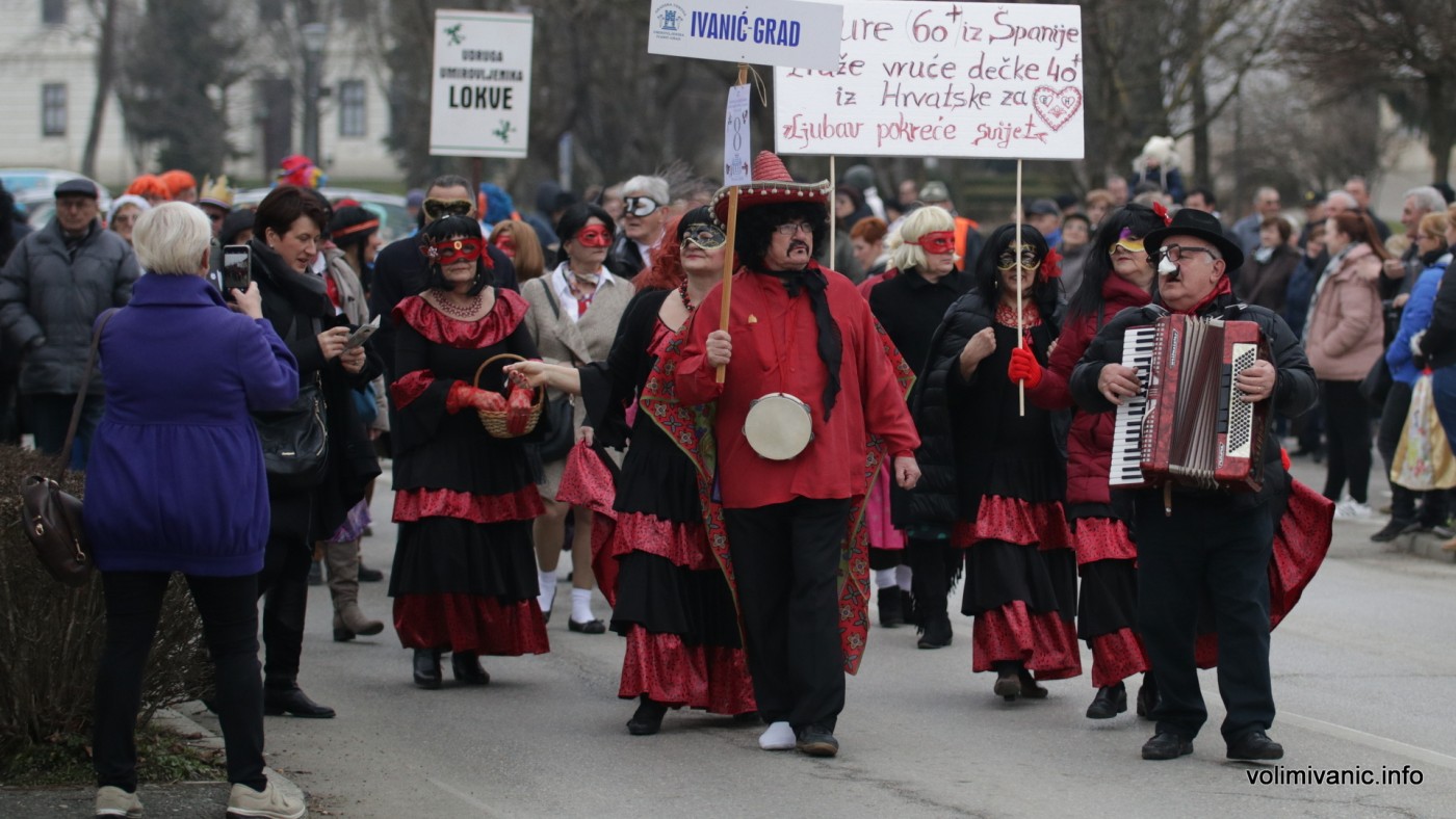 Maskirana povorka u 15.30 krenula je s parkirališta kod Sportskog parka Zelenjak prema Trgu Vladimira Nazora gdje su se maskirani sudionici i građani uz ples, pjesmu te nezaobilazne krafne i čaj zadržali do 17.00 kada je u prostoru restorana Ivanićanka započelo predstavljanje maskiranih skupina.