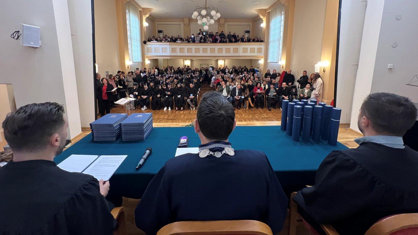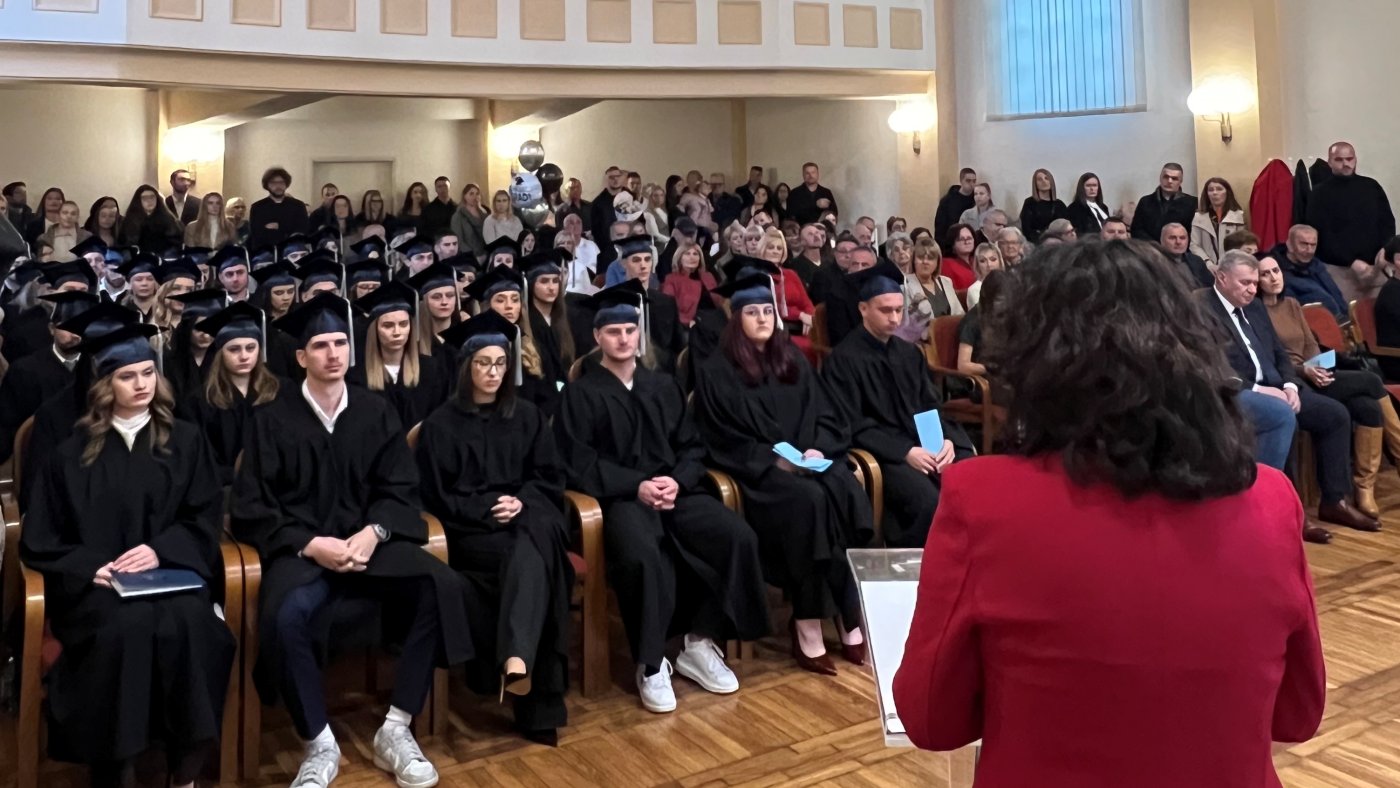 Najbolji studenti generacije, Sabrina Bajser i Dominik Mik, svojim su se govorima zahvalili profesorima, instituciji i svojim obiteljima, a svim su kolegama uputili inspirativnu poruku za budućnost.